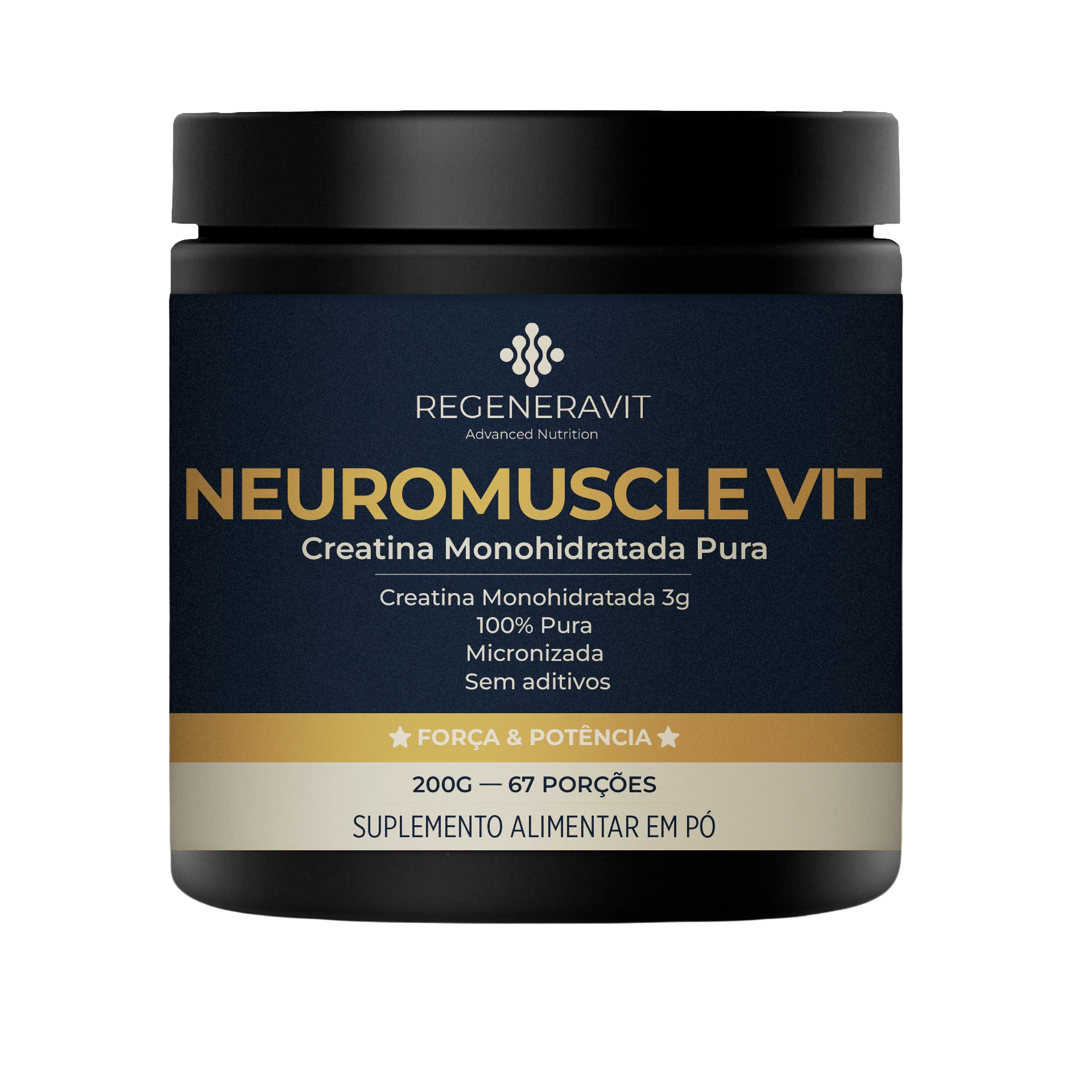 Um frasco contém 200 gramas de creatina em pó.