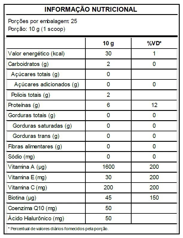 Conteúdo: 300 g de colágeno em pó